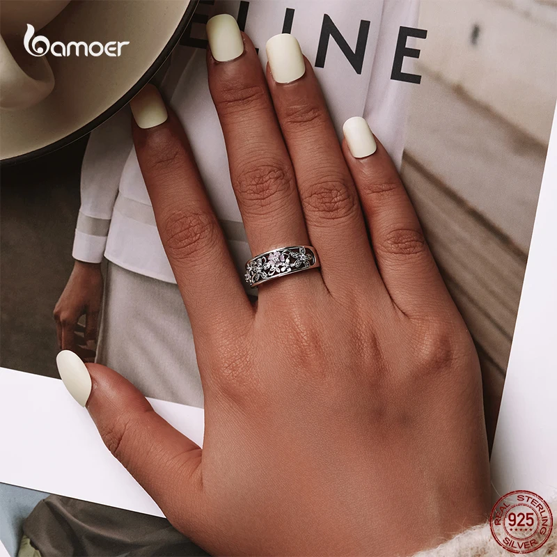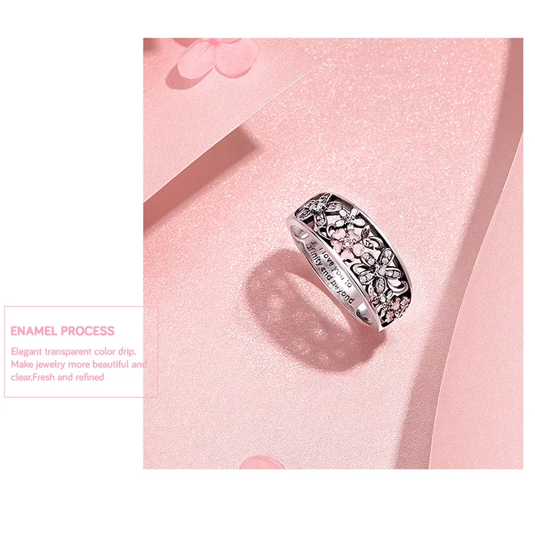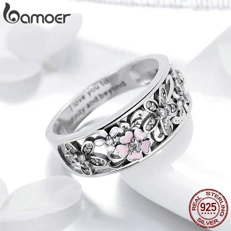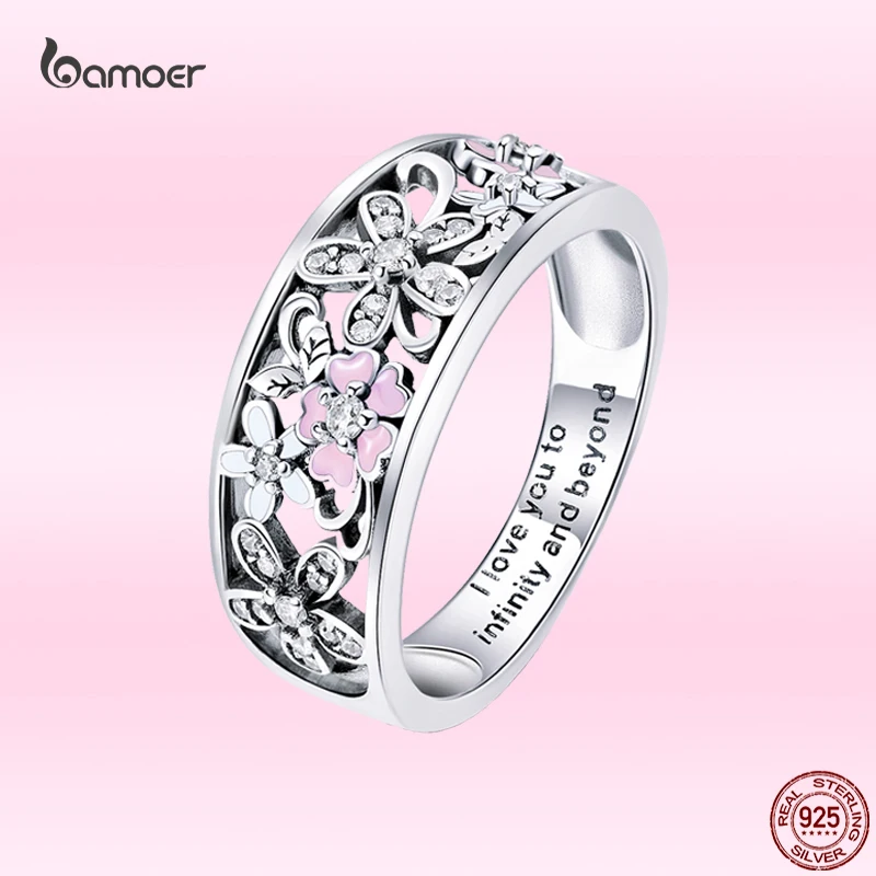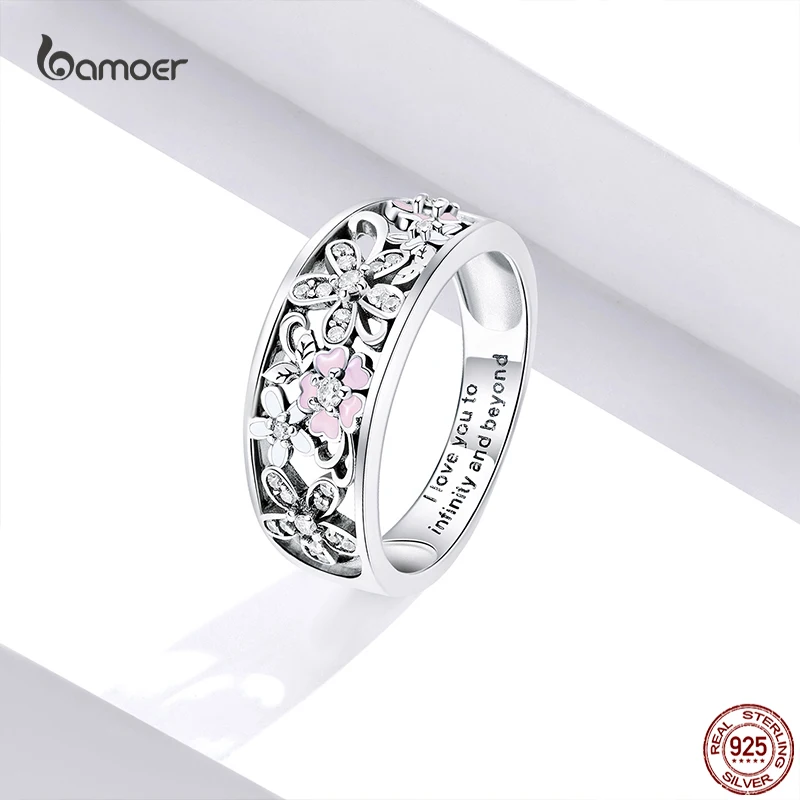 Bamoer цветущая вишня, кольцо на палец для женщин с ромашками, эмалированное широкий кольца для пары со словами ювелирные изделия аксессуары GXR390