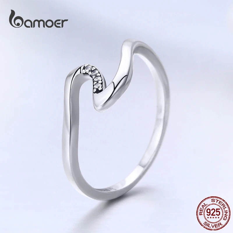 Женское кольцо в виде волны BAMOER, коллекция серебряных колец в богемном стиле GXR378, 100% оригинал