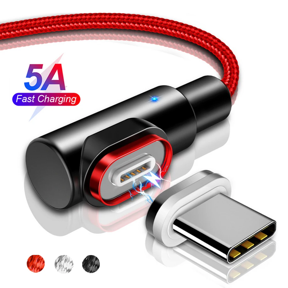 Магнитный кабель для Huawei P30 Pro Mate 20 Lite, 5 А, USB Type C, быстрая зарядка, нейлоновый Плетеный светодиодный индикатор, световые зарядки
