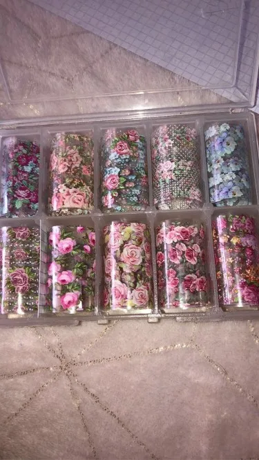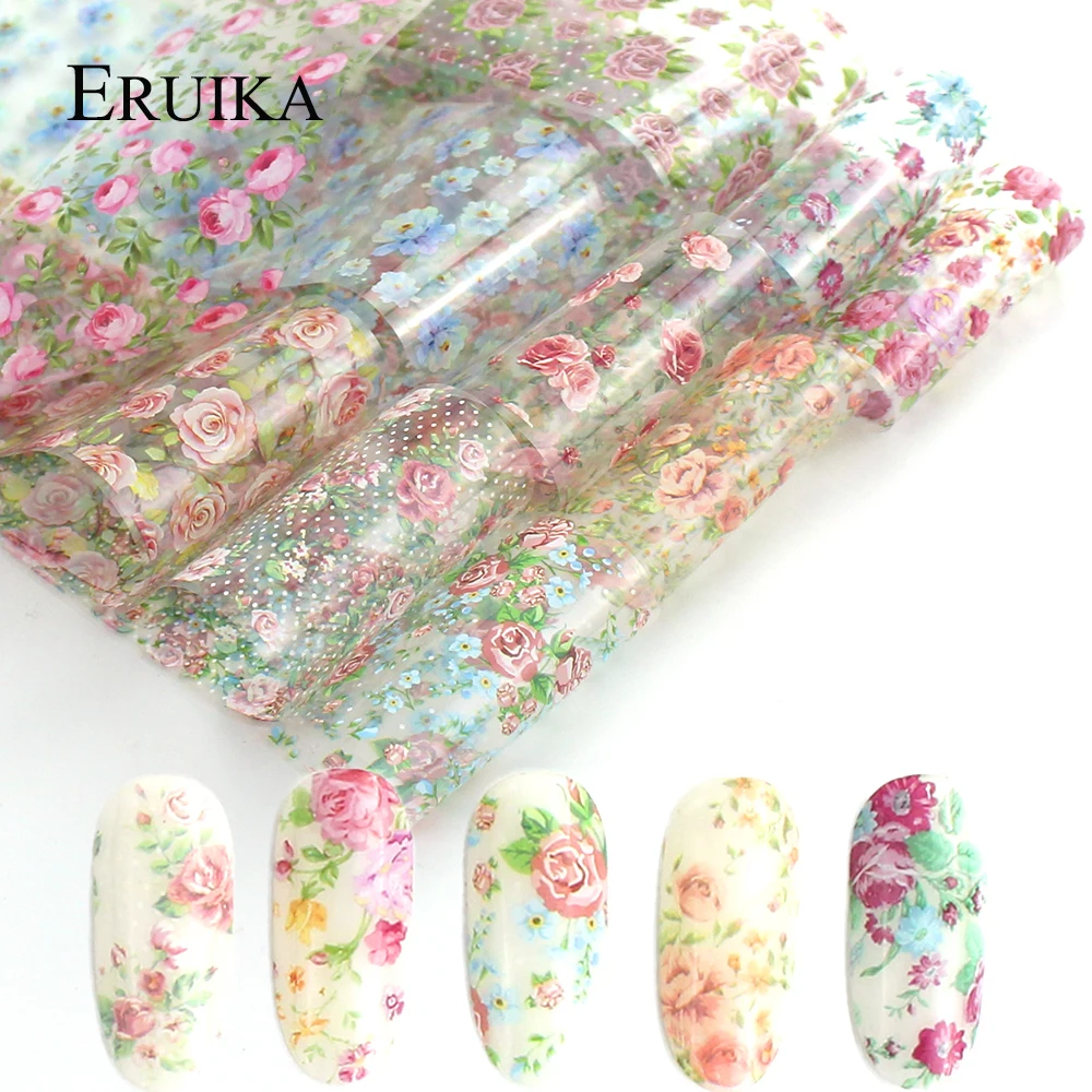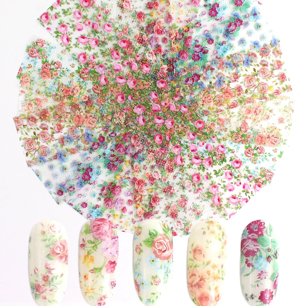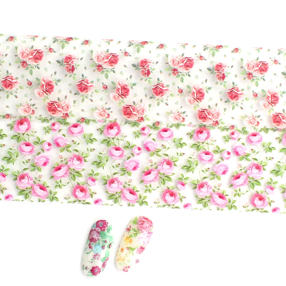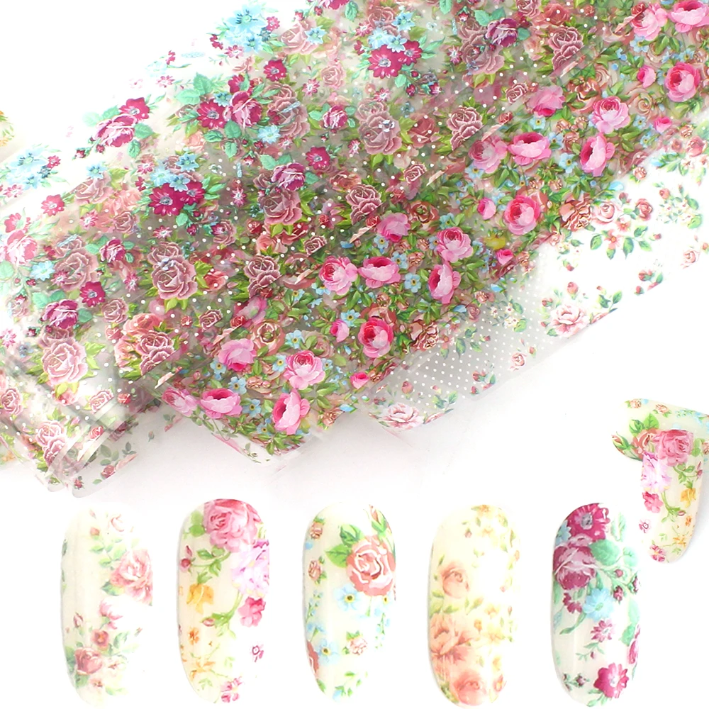 10 шт., переводная фольга с розами для дизайна ногтей, маникюрные слайдеры, наклейки для ногтей, клейкие декоративные обертки для дизайна ногтей