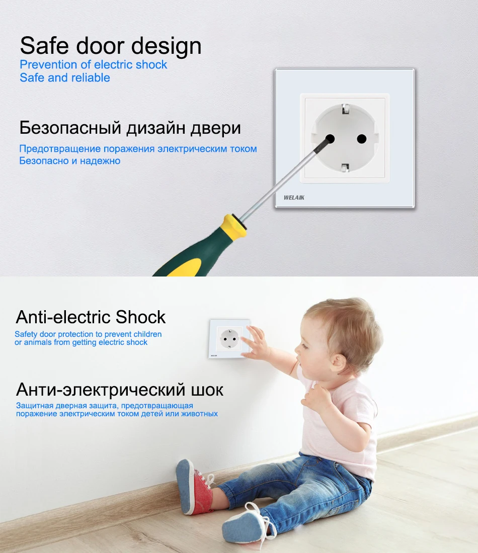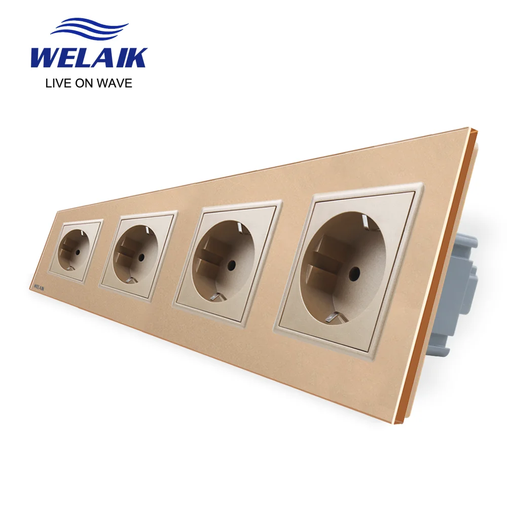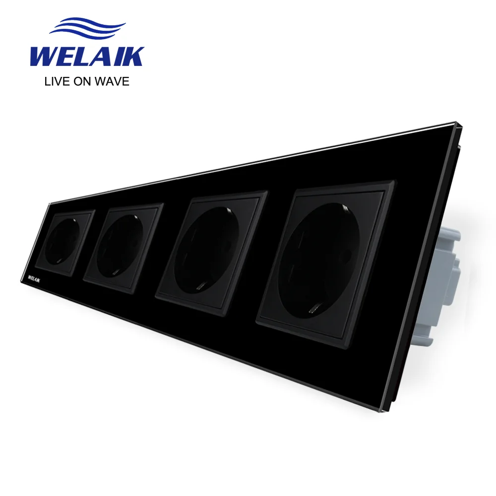 Welaik Стекло Панель стены разъем розетка Белый Черный Европейский Стандартный Мощность разъем AC110 250 В a38e8e8ewb