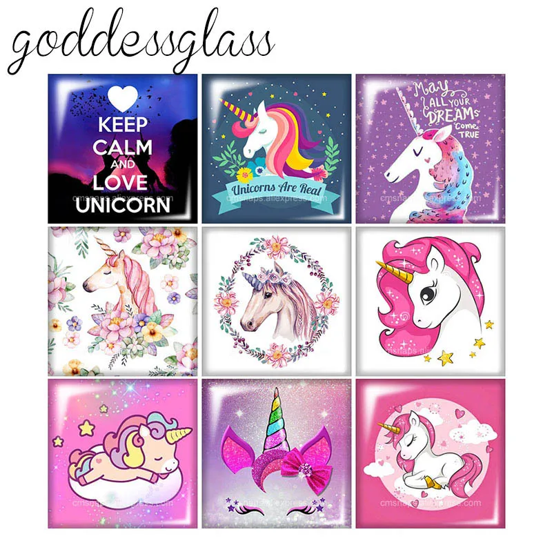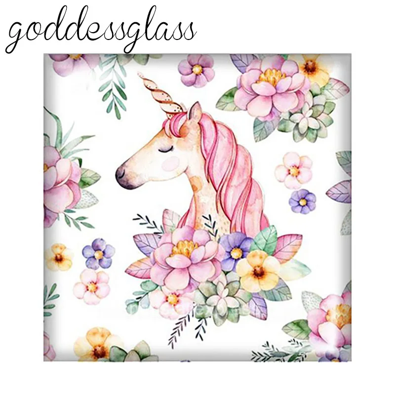 FB0358 квадратные стеклянные кабошоны для фотосъемки, цветы, единорог, лось, кошка, ежик, 12 мм20 мм25 мм30 мм, фурнитура для демонстрации плоской задней поверхности