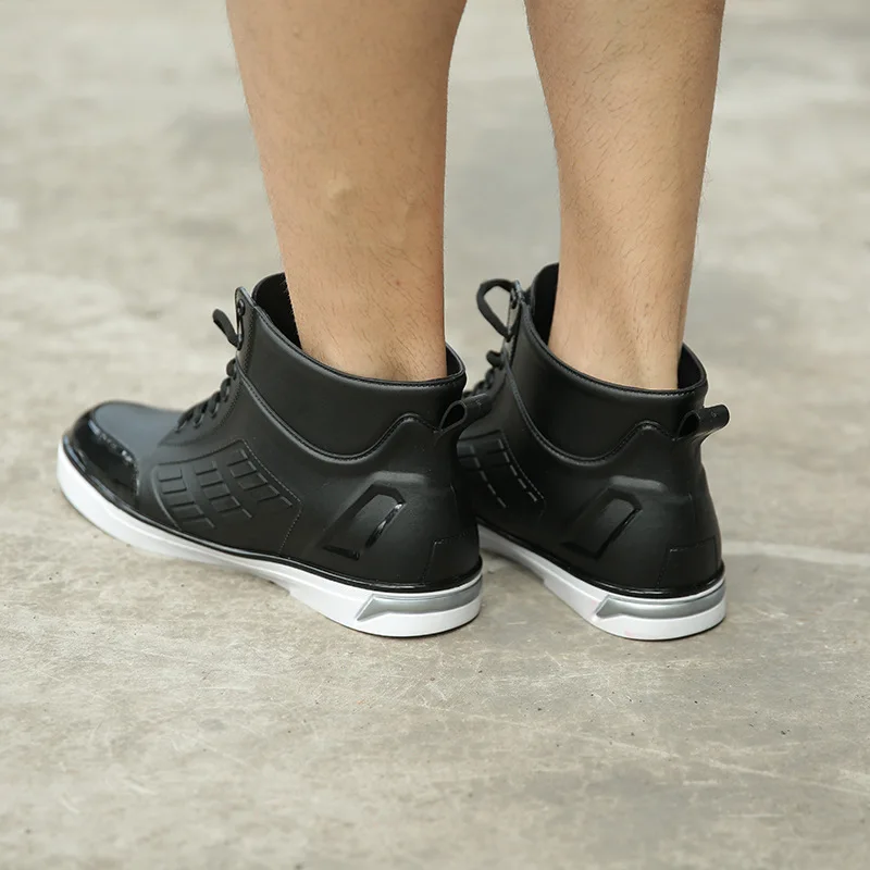 Мужские непромокаемые резиновые ботинки, ботинки для дождя, черные, на шнуровке, весна-зима, 2019