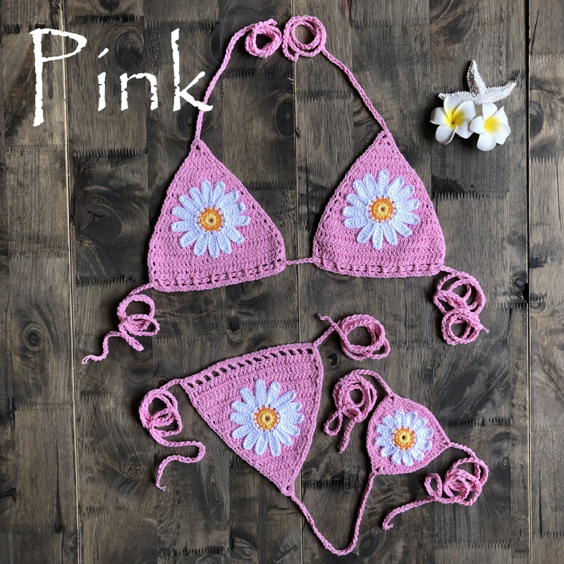 Новое поступление ручной работы вязаный цветок микро бикини G стринги пляжные микро Купальники сексуальное нижнее белье наборы 2019