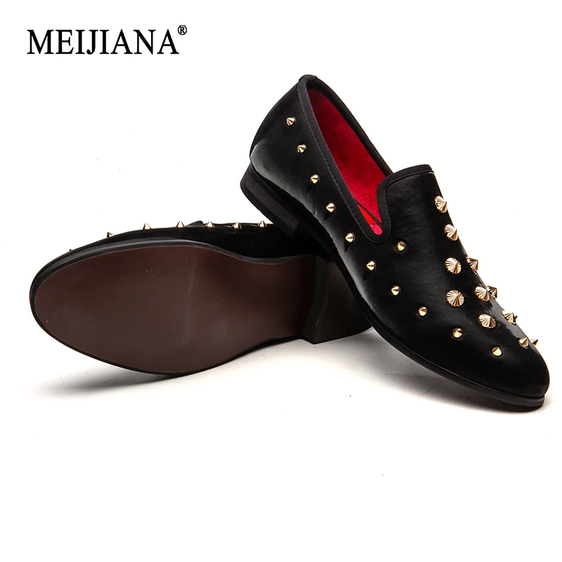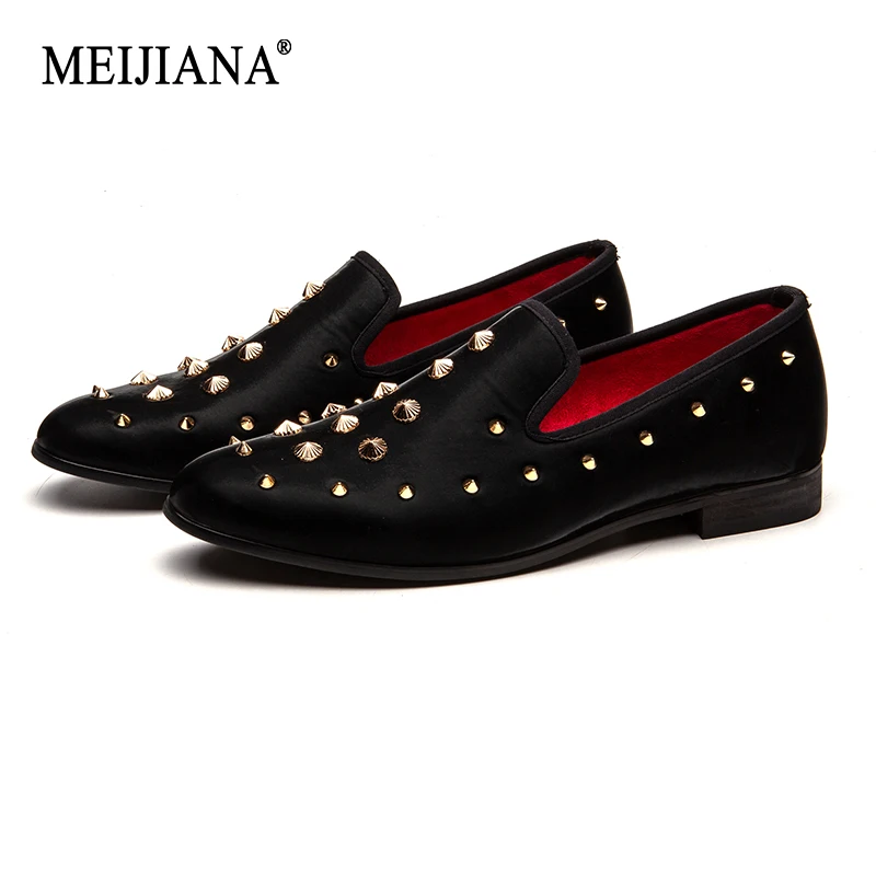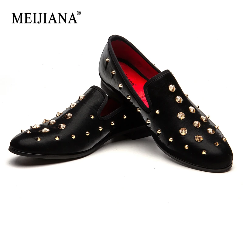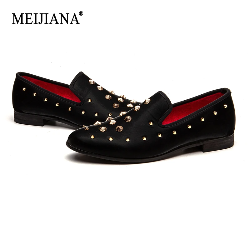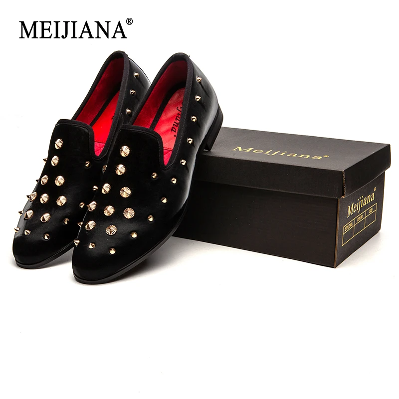 Туфли MEIJIANA мужские с металлическими заклепками, модные роскошные брендовые лоферы, повседневная обувь для вождения и путешествий, черные, 2019