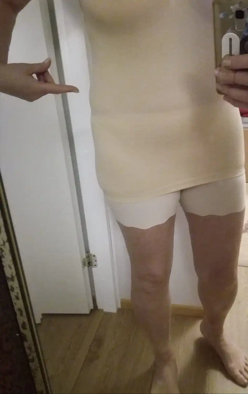 Заказывала 2-х размеров L и M (ношу 44-46 размер). Майки хорошие, но эффекта утяжки нет. В низу майки плотная резинка и в размере М передавливает, создавая дополнительную складку на середине ягодиц.