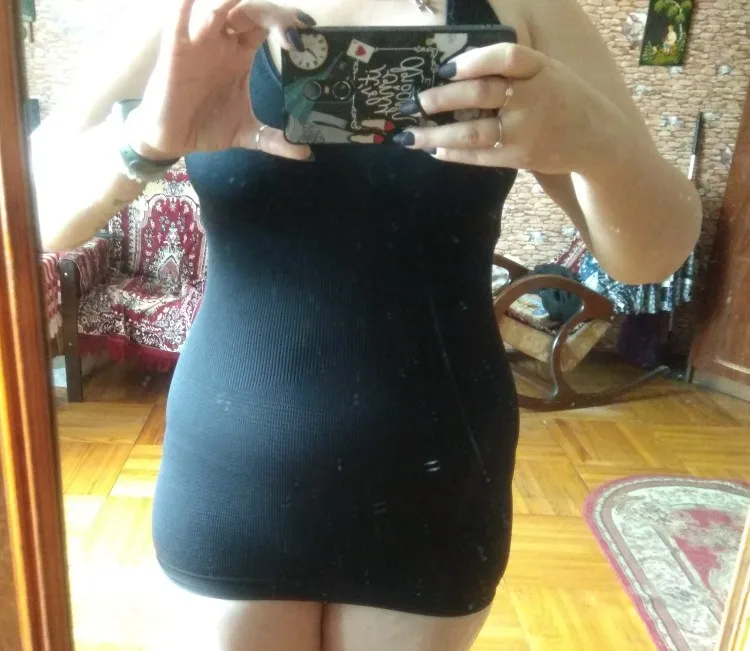 Маечка отличного качества, тонкий трикотаж хорошо растягивается. Эффект утяжки вряд ли будет достигнут, а резинка по низу изделия очень плотная (может перетянуть туловище).