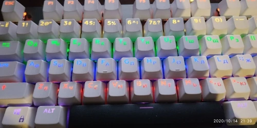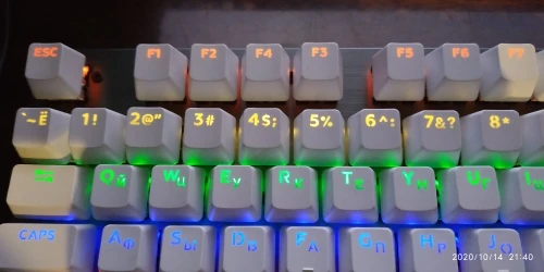 Клавиши хорошего качества и тактильно приятные. Кириллица и латиница прекрасно различимы в темноте и при свете дня. Кнопки подходят для клавиатур разных форм факторов. Оставил родные функциональные и пробел, буквеннно-цифровые поменял. Смотрится прикольно. Доставка до Москвы 20 дней, трек отслеживается.