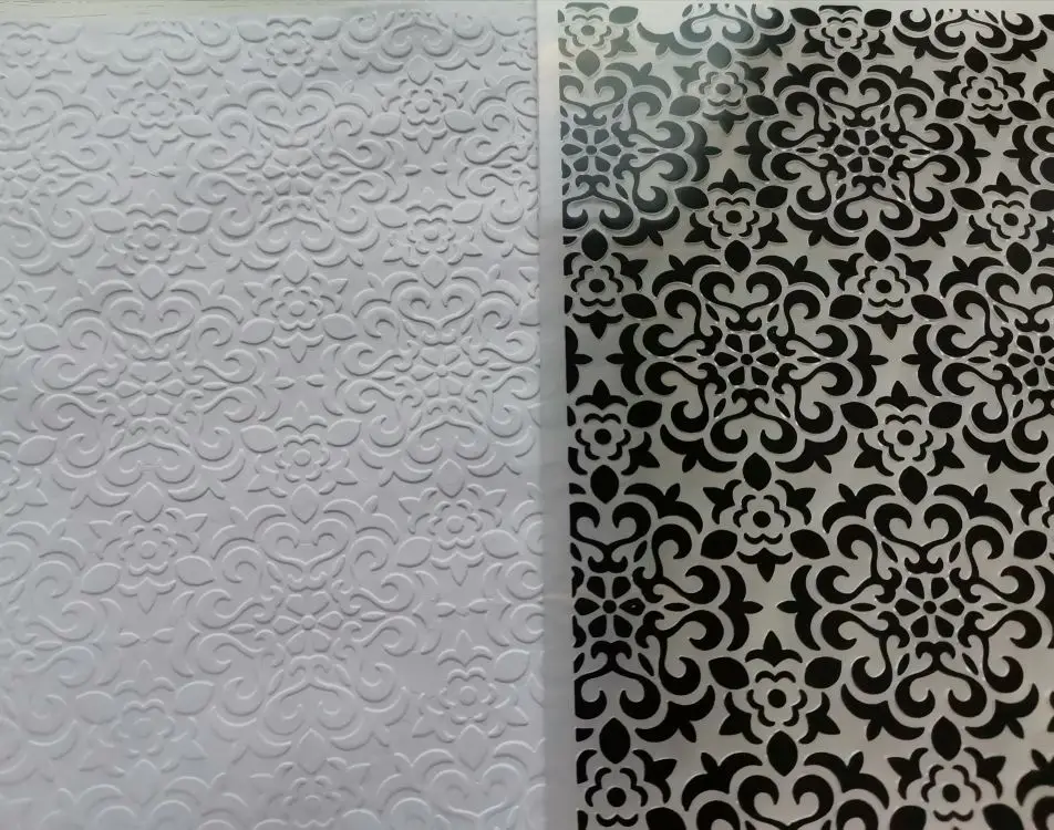 3 недели до Питера!Обалденный рисунок получается. См. фото. На одном выпуклая сторона, на другой стороне вдавленный рисунок... очень красиво. сам трафарет тонкий, но это хорошо, он ложится под стёкла без дополнительного листа... рекомендую!!! Спасибо продавцу! Ни с кем не болтала, не было нужды