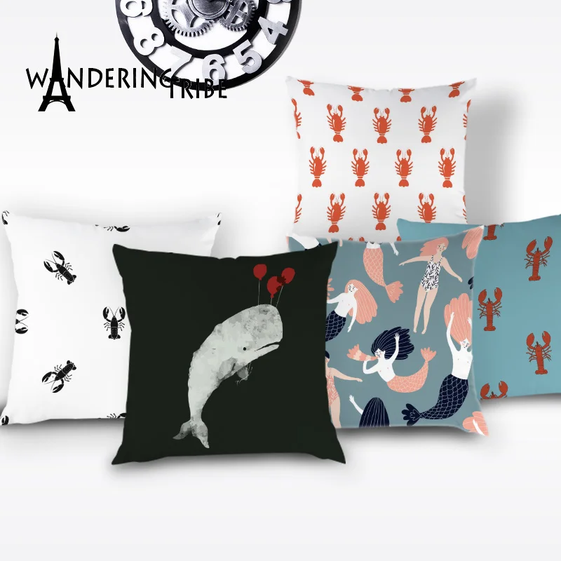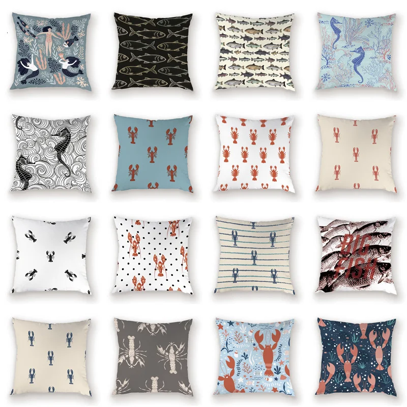 Наволочка Морская жизнь с рисунком лобстера, Мультяшные животные, рыба, Декор, декоративная подушка, чехол, наволочки с русалочкой, морским коньком, чехлы для гостиной