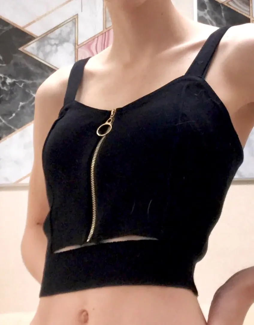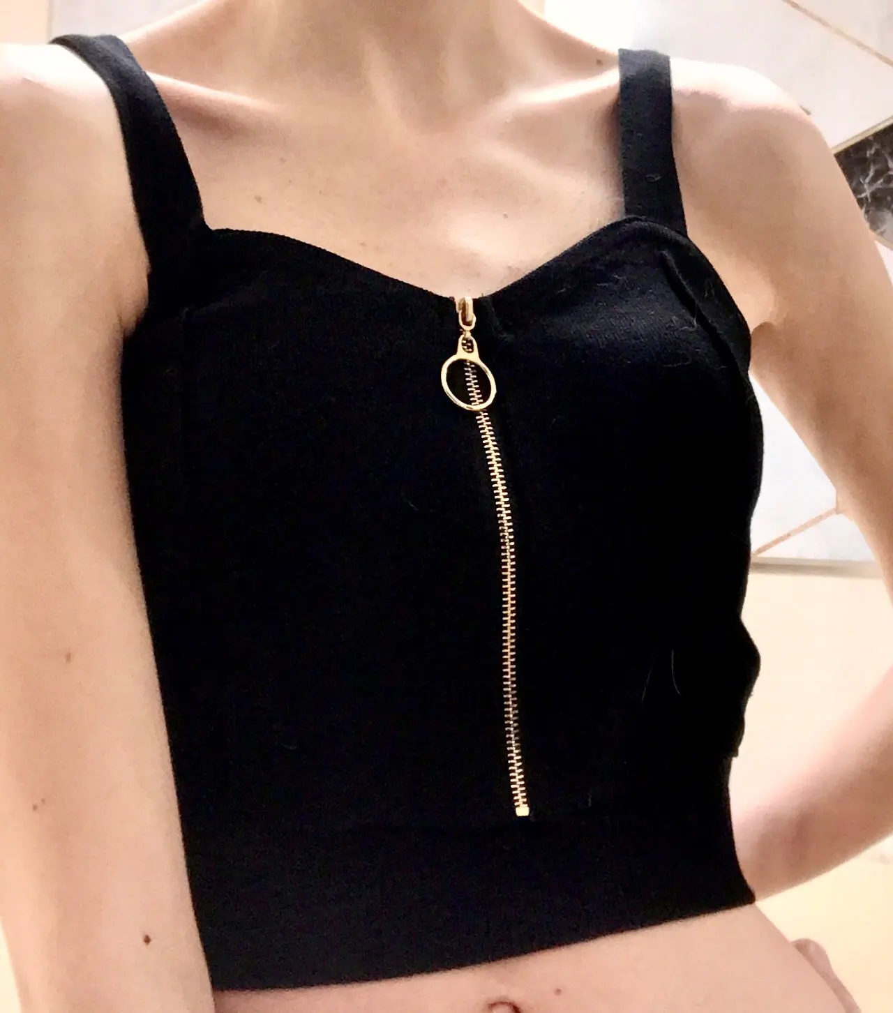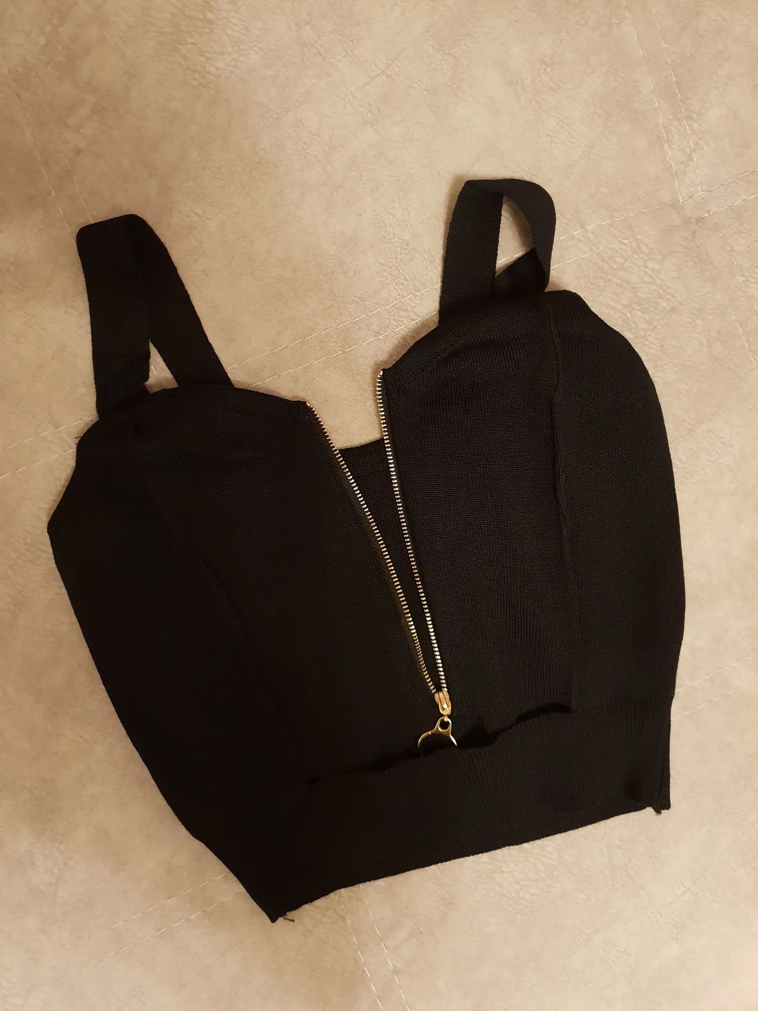 Я влюбилась.. сначала пыталась расстегнуть полностью.. но поняла, что она и должна не раскрываться полностью. Топ супер! не ного торчат нитки, но всё легко убирается)