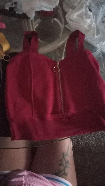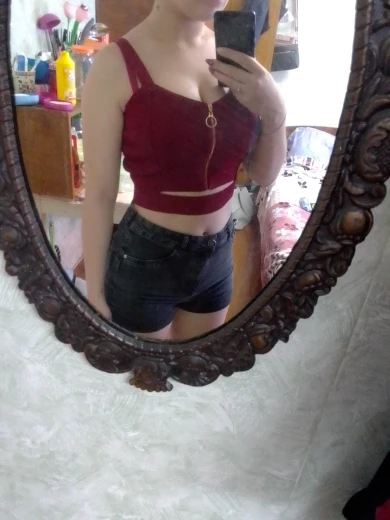 Топ неплохой, но он больше красный, чем бордовый. Смотрится хорошо. Нитки немного торчали на швах, но это не критично.