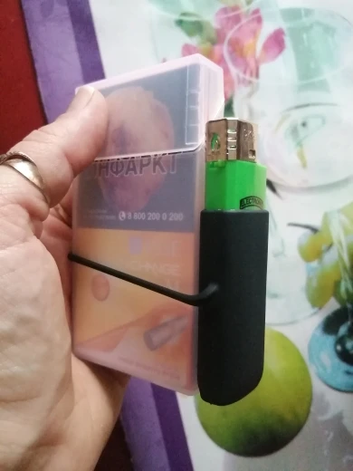 ✔️За упаковку 100⭐⭐⭐! Вот прям приятно удивили - мешочек, пупырка и картонная коробка! ✔️Хорошая штучка, держатель силиконовый, для тонких зажигалок подходит На фото старая зажигалка, под руку попалась именно поломанная но суть передала - на любую пачку надевается. Широкие зажигалки не влезут, к сожалению ♀️