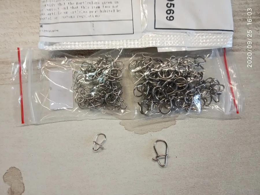 Товар получил.Продавец быстро отправил товар.С момента заказа до получения-Саранск прошло 24 дня.Заказывал ради интереса. Соответствуют описанию.Длинна 9мм,ширина 5мм.Проволока упругая,После нескольких открытий,своих свойств не теряет.Для лайта великоваты.