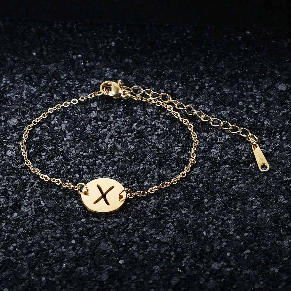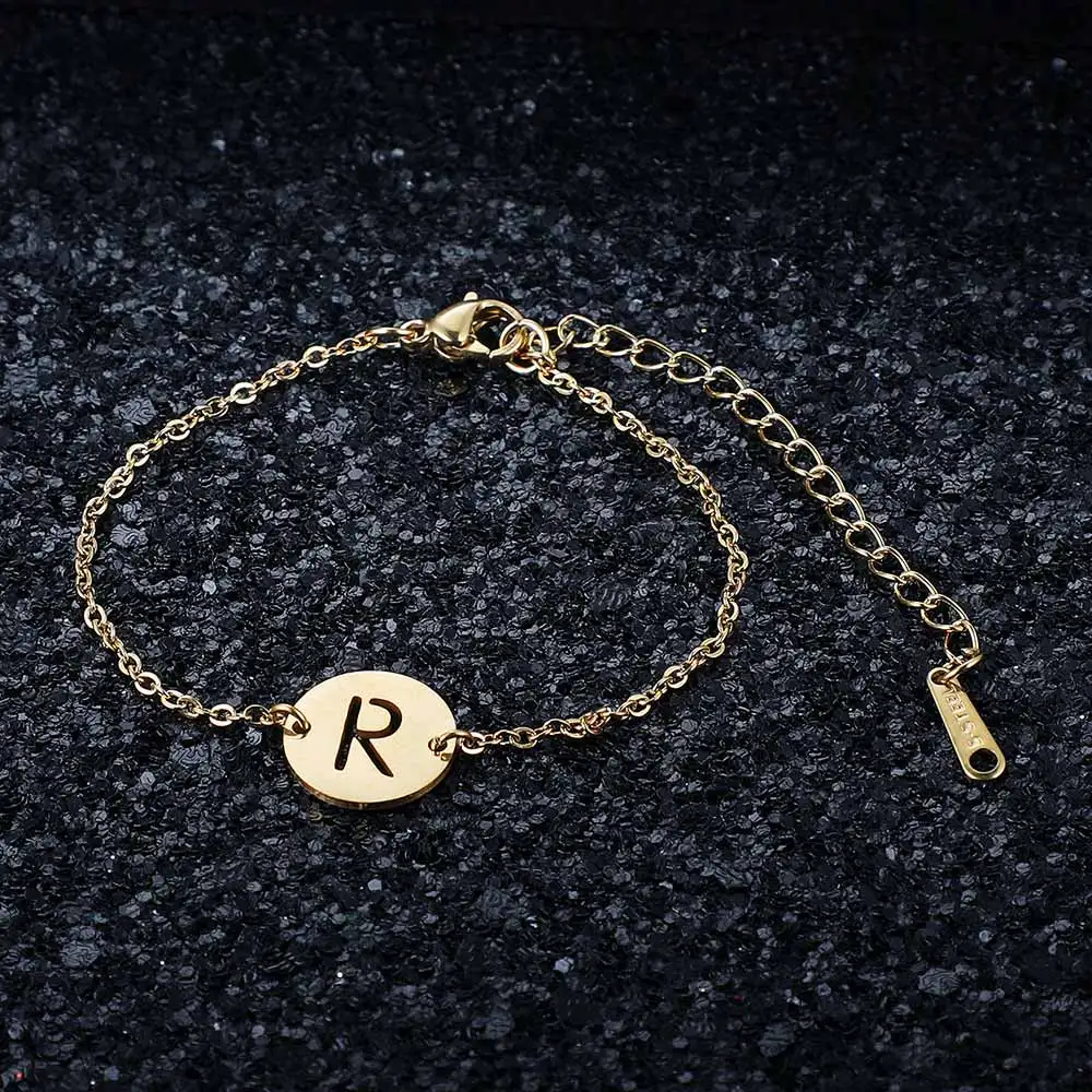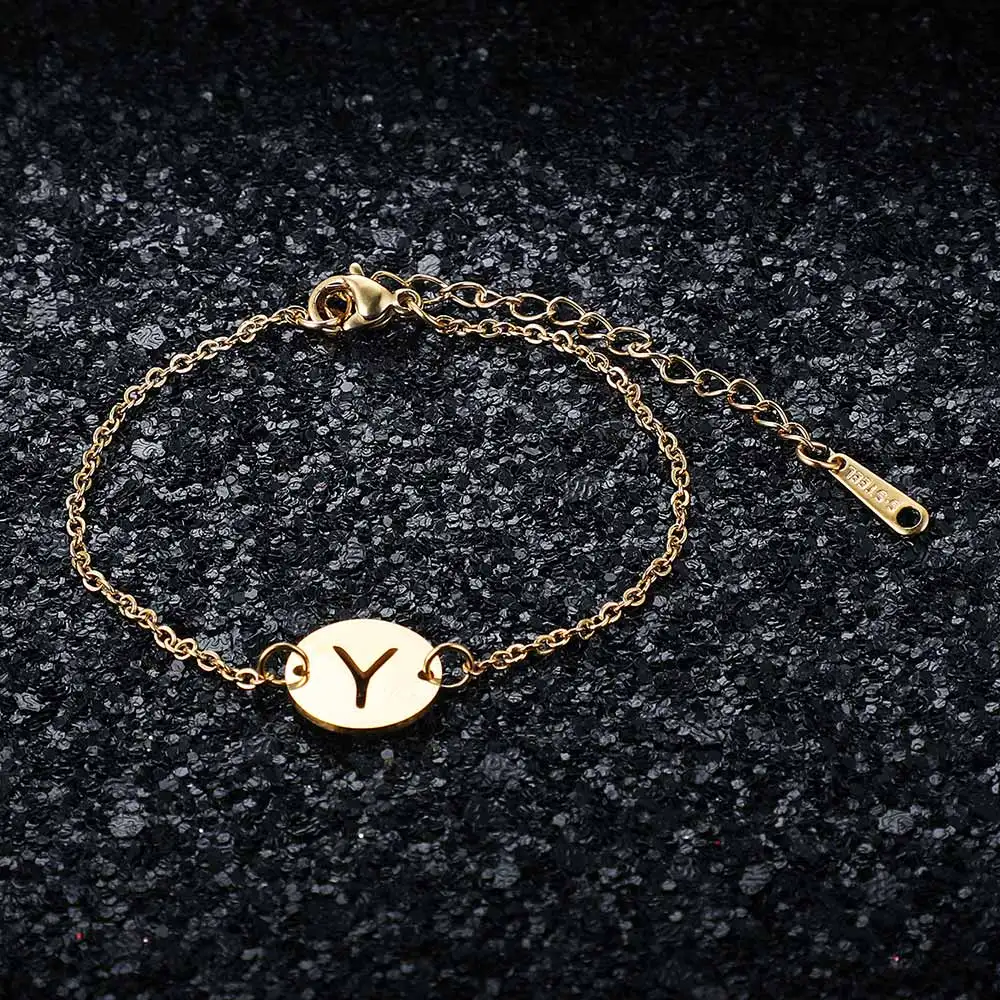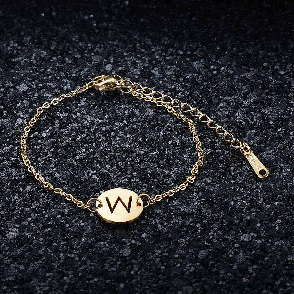 Сказочный 100% настоящий A-Z из нержавеющей стали с золотым наполнителем, очаровательный браслет с буквой для женщин