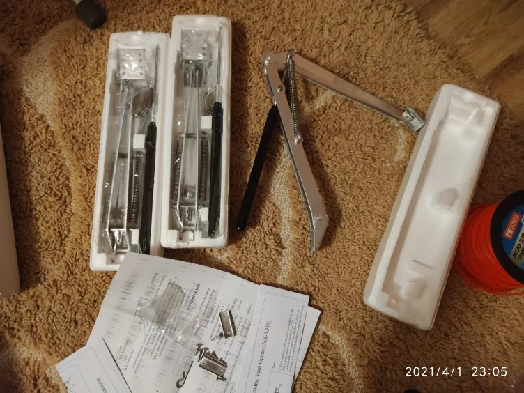Пришло быстро, упаковка пенопласт-все целое. В этот раз взял с двумя пружинами, до этого с одной пружиной, обе открывашки отработали сезон без проблем, но в сентябре не стали закрывать до конца, поэтому и взял с двумя пружинами, для пробы.