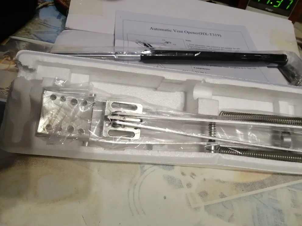 Доставка в ЛО за полтора месяца. Цилиндры на тепло реагируют - выдвигаются. Фурнитура в комплекте. Весной будем пробовать ставить на теплицу.
