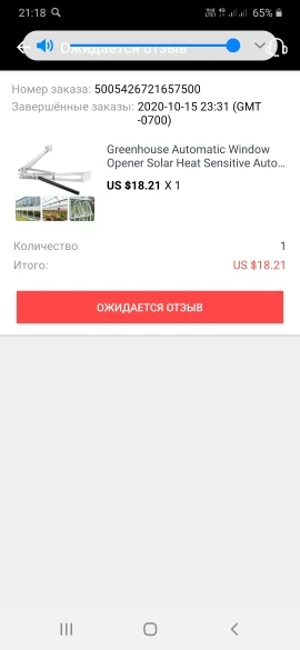 Упаковано хорошо, выглядит добротно, изготовлено аккуратно. Установлю весной в теплицу- проверю работоспособность. Надеюсь будет работать исправно. Доставка быстрая.
