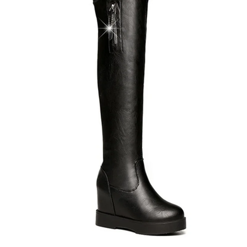 Женские сапоги выше колена, зимние сапоги на меху, из мягкой кожи, на молнии