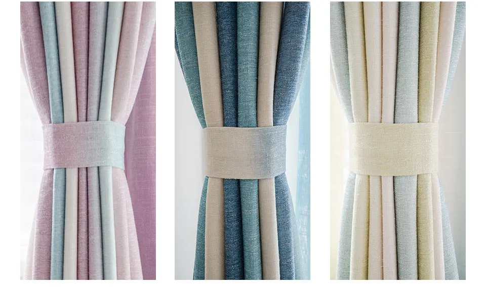 Современные льняные однотонные тюлевые шторы в японском стиле для г...