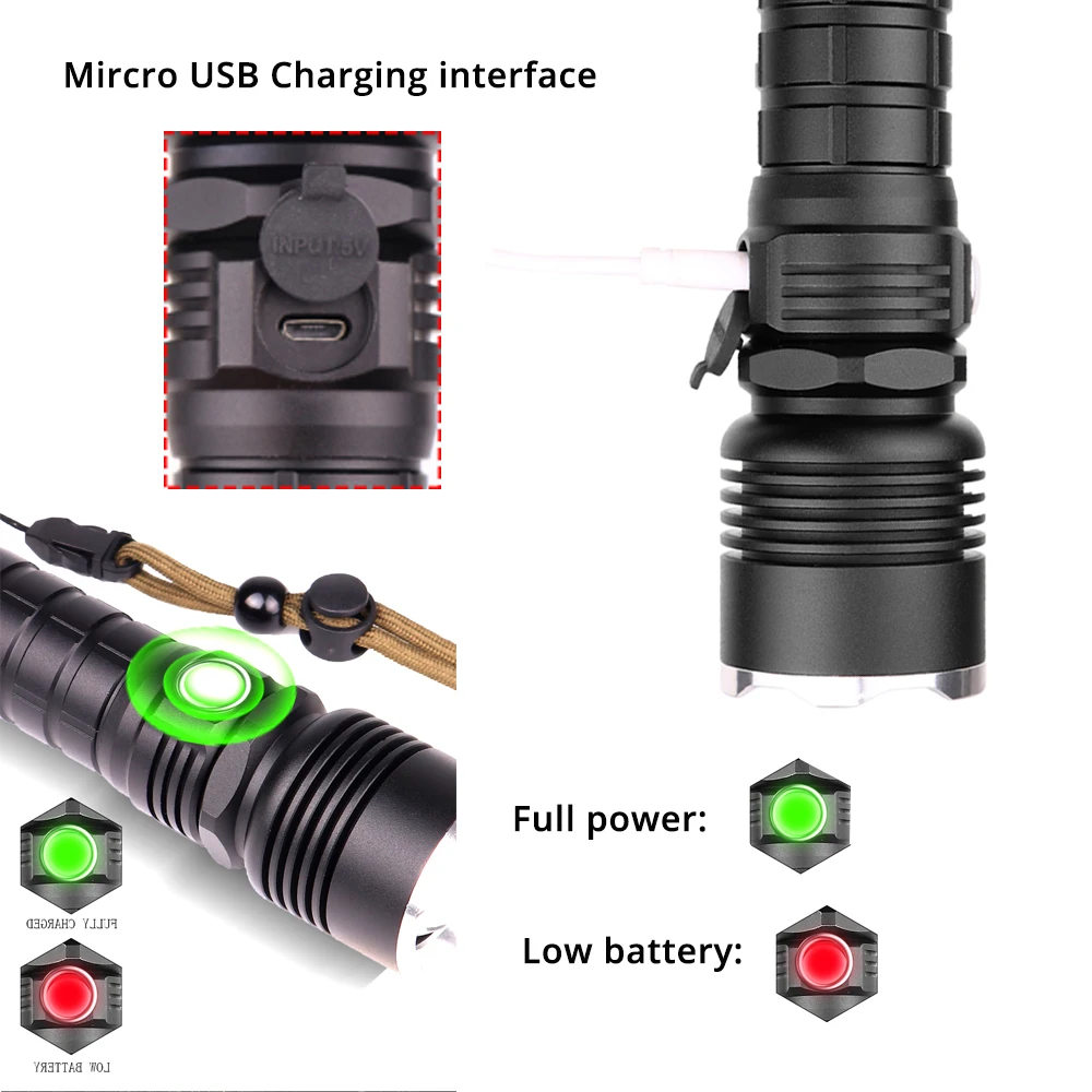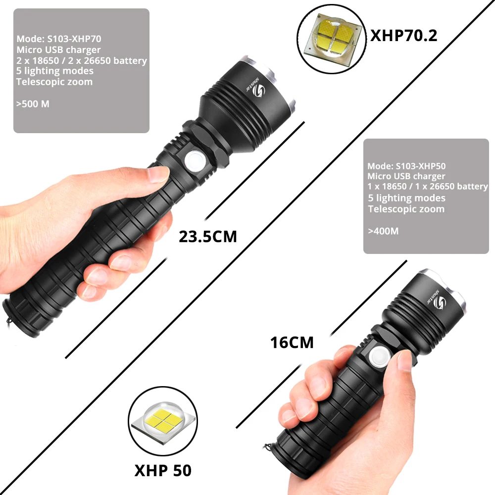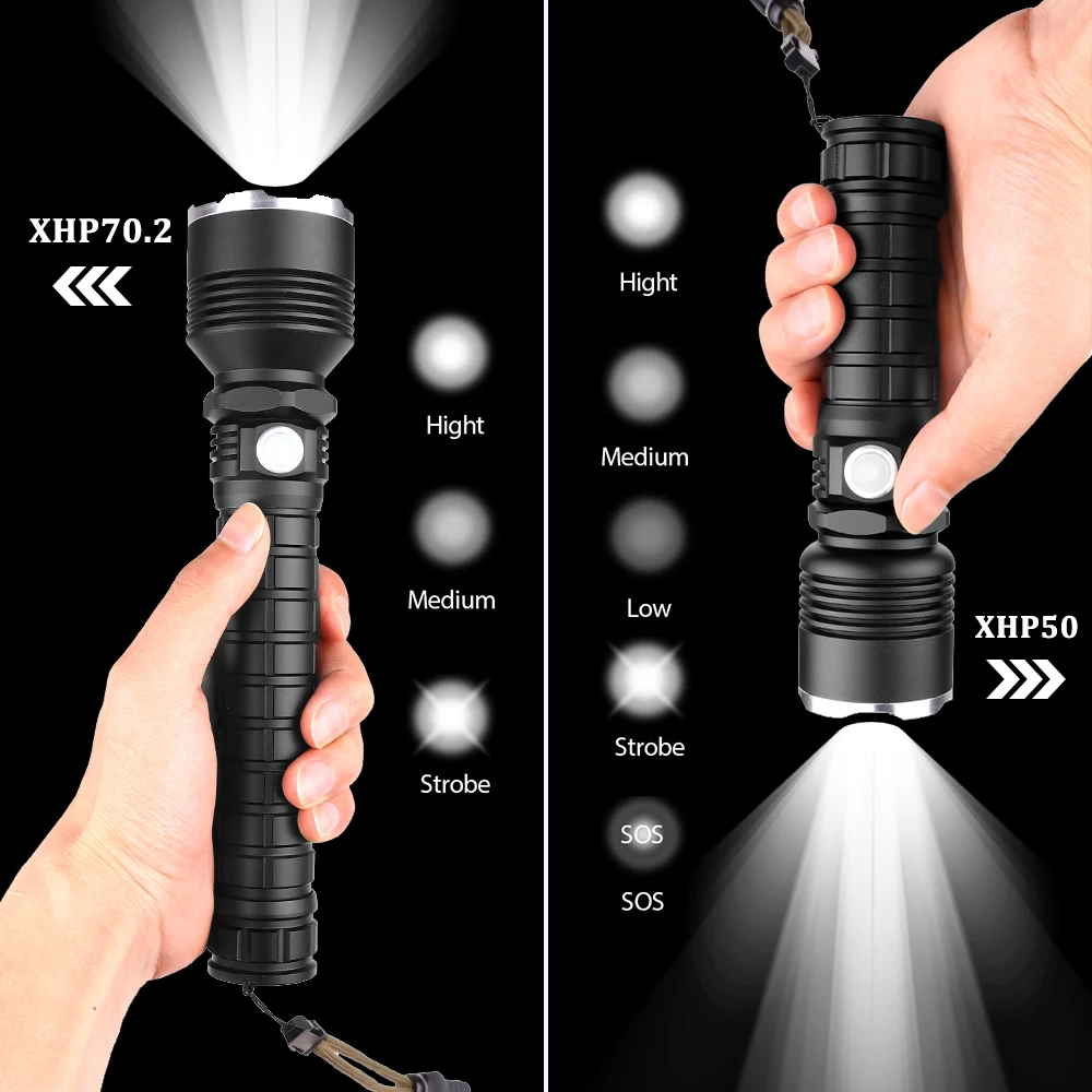 Мощный XHP70 светодиодный фонарик 50000 люмен светодиодный фонарь с поддержкой зума 5 режимов освещения, питание от 18650 или 26650 батареи для наружного использования