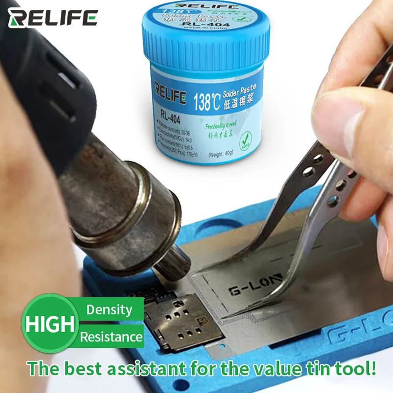 Паяльная паста RELIFE RL- 404, 138 C, низкотемпературная для IPHONE X, XS, XSMAX, безсвинцовая Оловянная масса