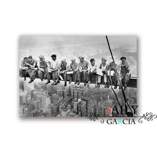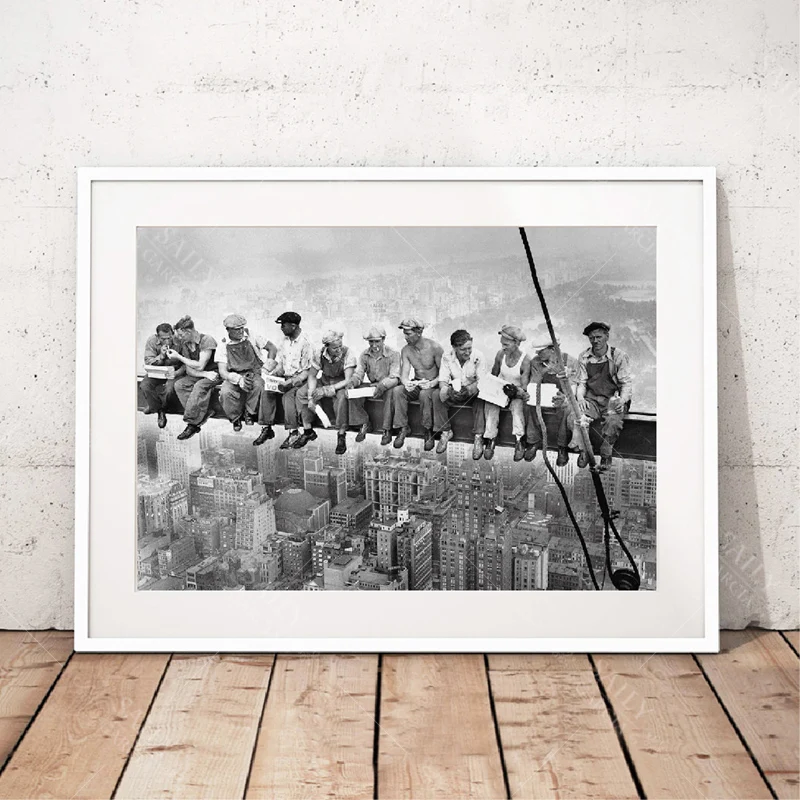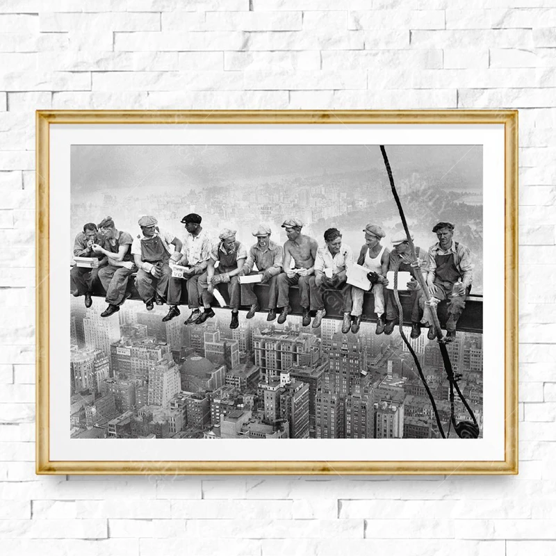 Винтажная Картина на холсте, Современное украшение для дома, картина с изображением Нью-Йорка ланч на небе, настенный плакат черно-белого цвета