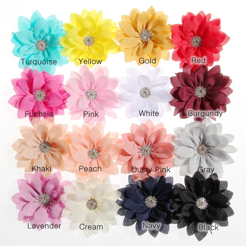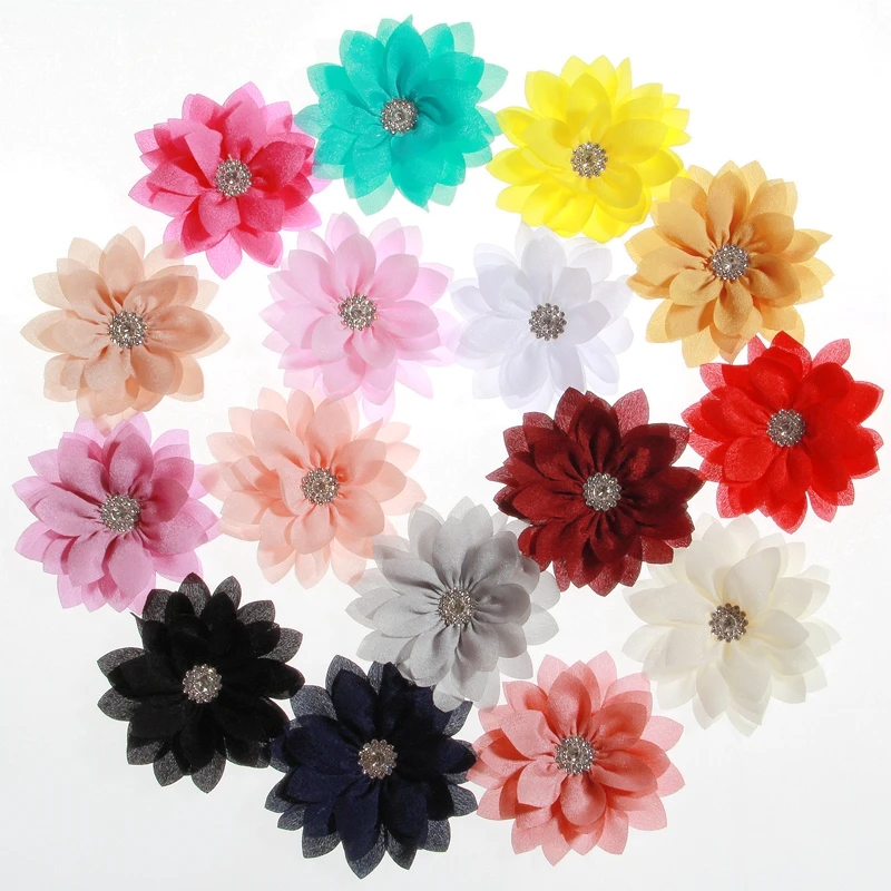 Цветы для девочек, шифоновые, с пуговицей, 8,5 см, 3,4 дюйма, искус...