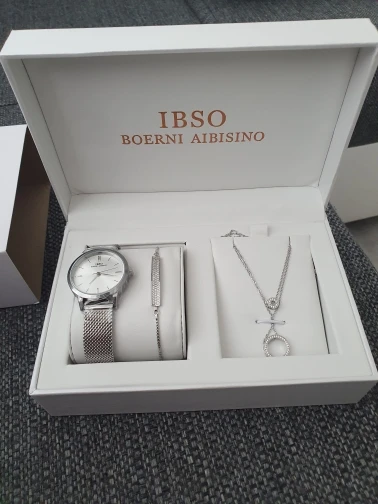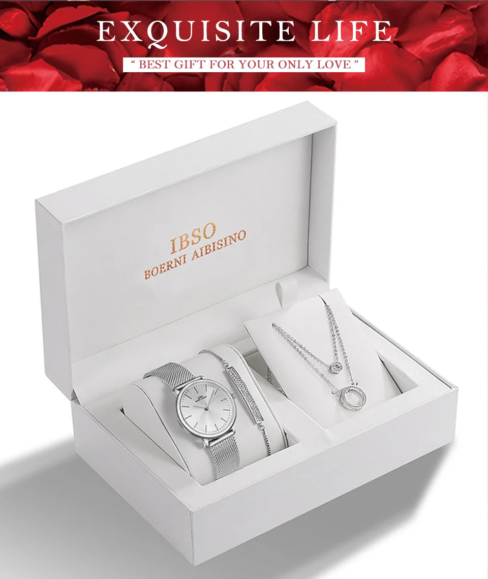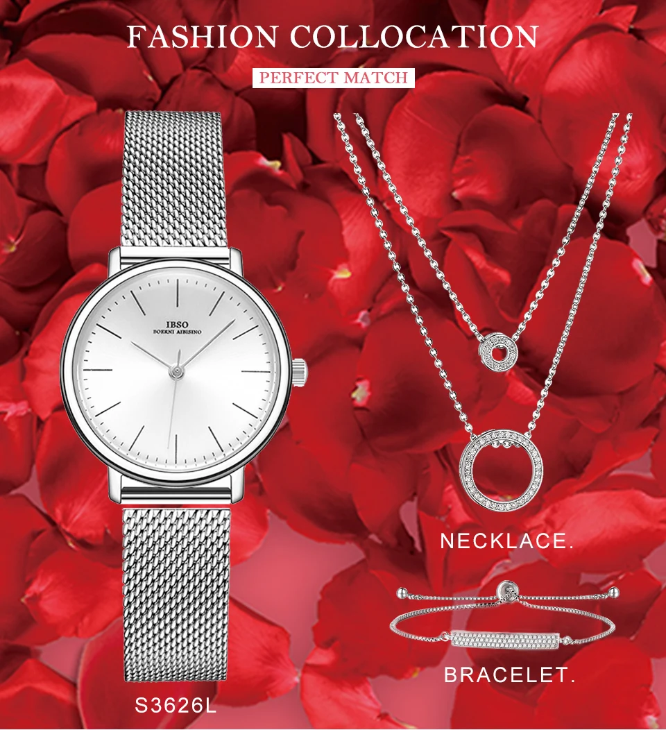 Набор женских кварцевых часов IBSO, браслет и ожерелье с кристаллами, серебряные, комплекты с часами