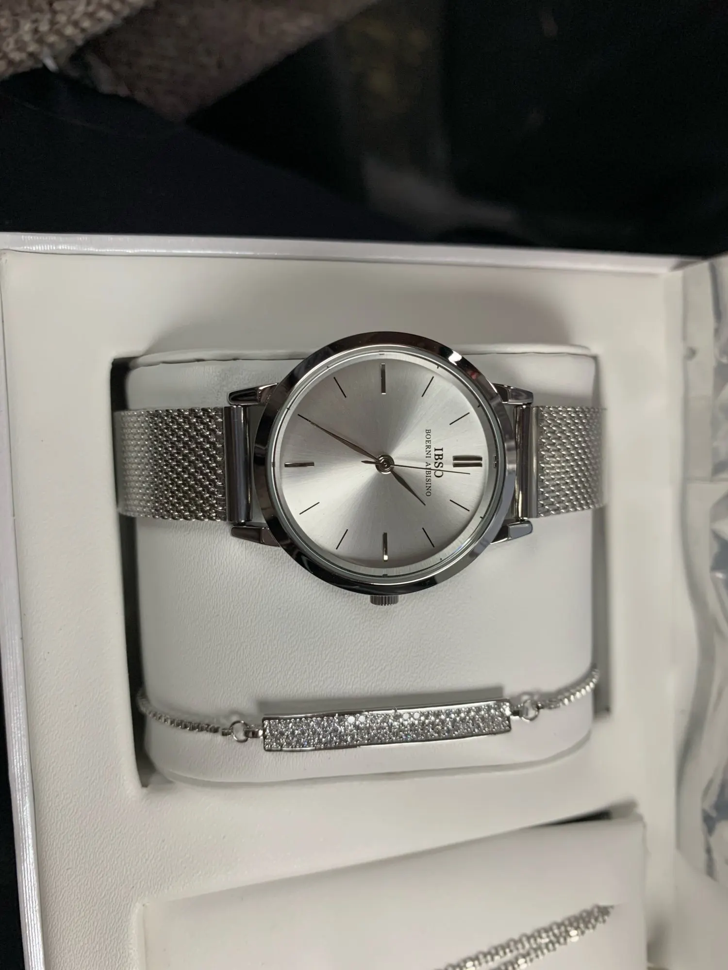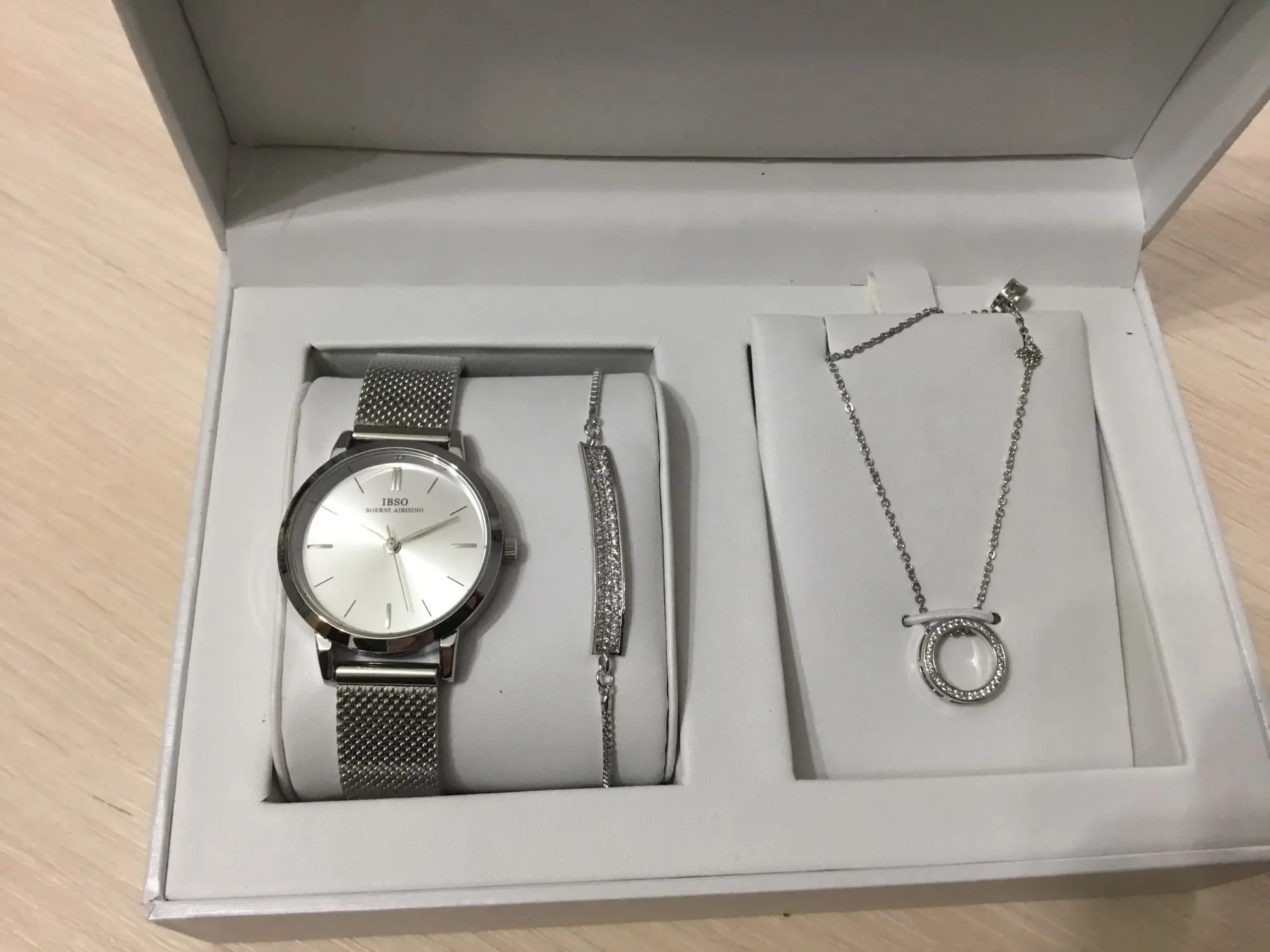 Часы тонкие красивые элегантные. К часам идёт ещё браслет на руку и подвеска на цепочке. Всё очень красивое. Можно взять на подарок. Большое спасибо продавцу за быструю доставку. Я очень рада этому приобретению.