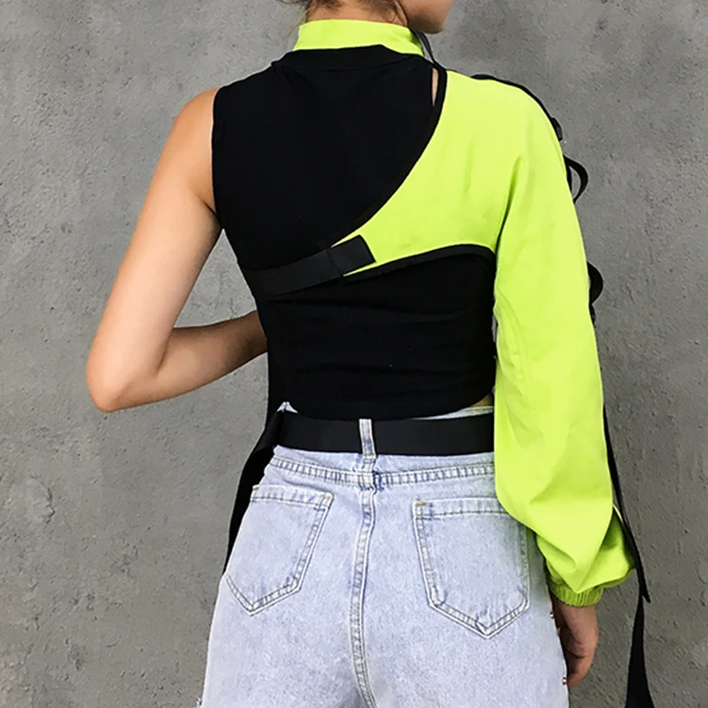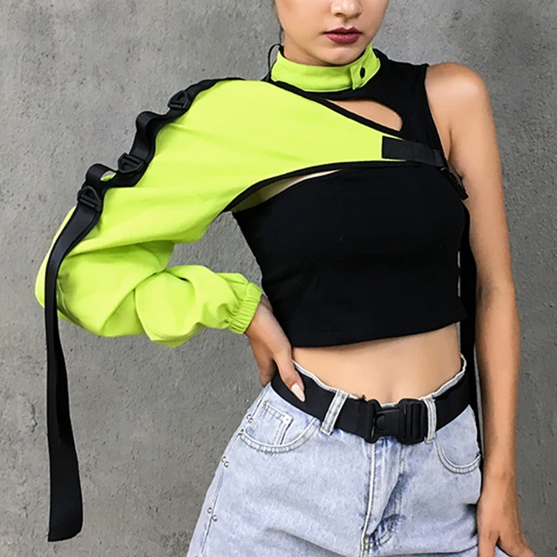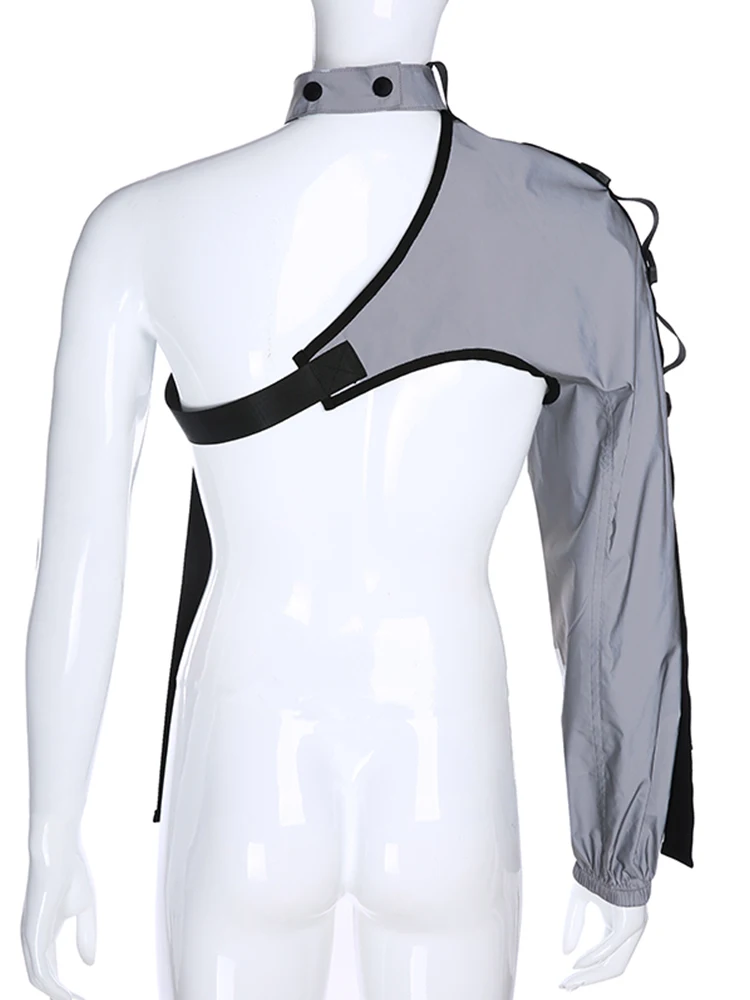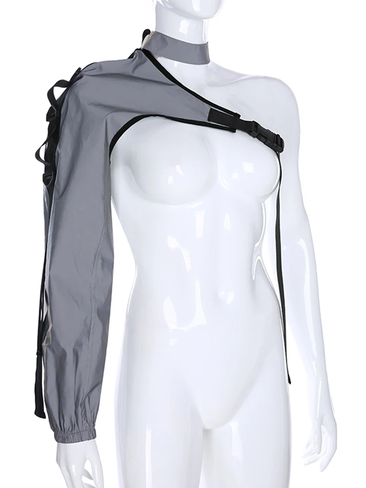 Женская Светоотражающая укороченная куртка на одно плечо с лентой, ...