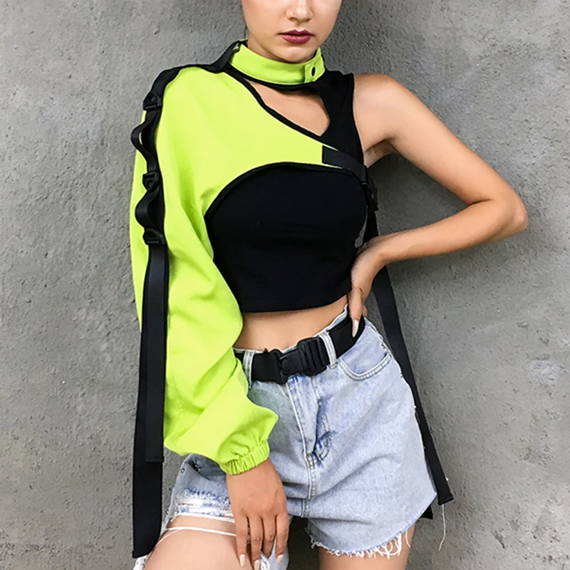 HEYounGIRL светоотражающий топ на одно плечо Harajuku панк футболка...