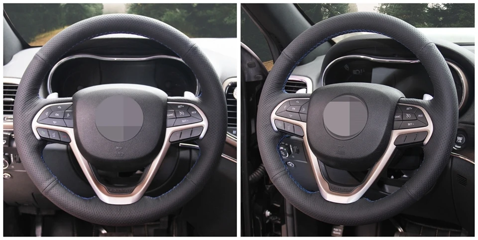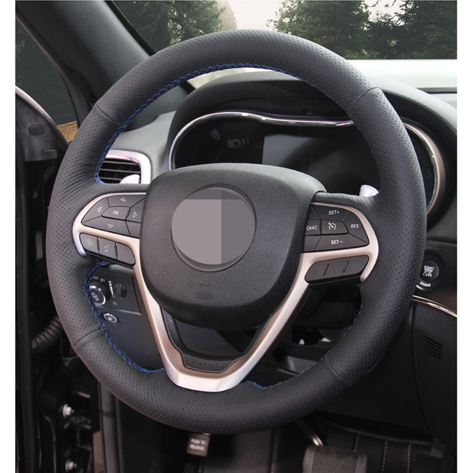 Черные чехлы для руля Jeep Grand Cherokee из искусственной кожи, сшитые вручную, для Jeep Grand Cherokee, 2014, 2015, 2016