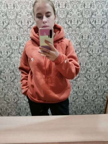 Цвет нифига не персиковый, а явственно розовый, на самой толстовке пятна, материал неприятный. Сверху хреновый акрил, внутри очень паркий флис. По размеру XXL на рост 174 - лёгкий оверсайз.