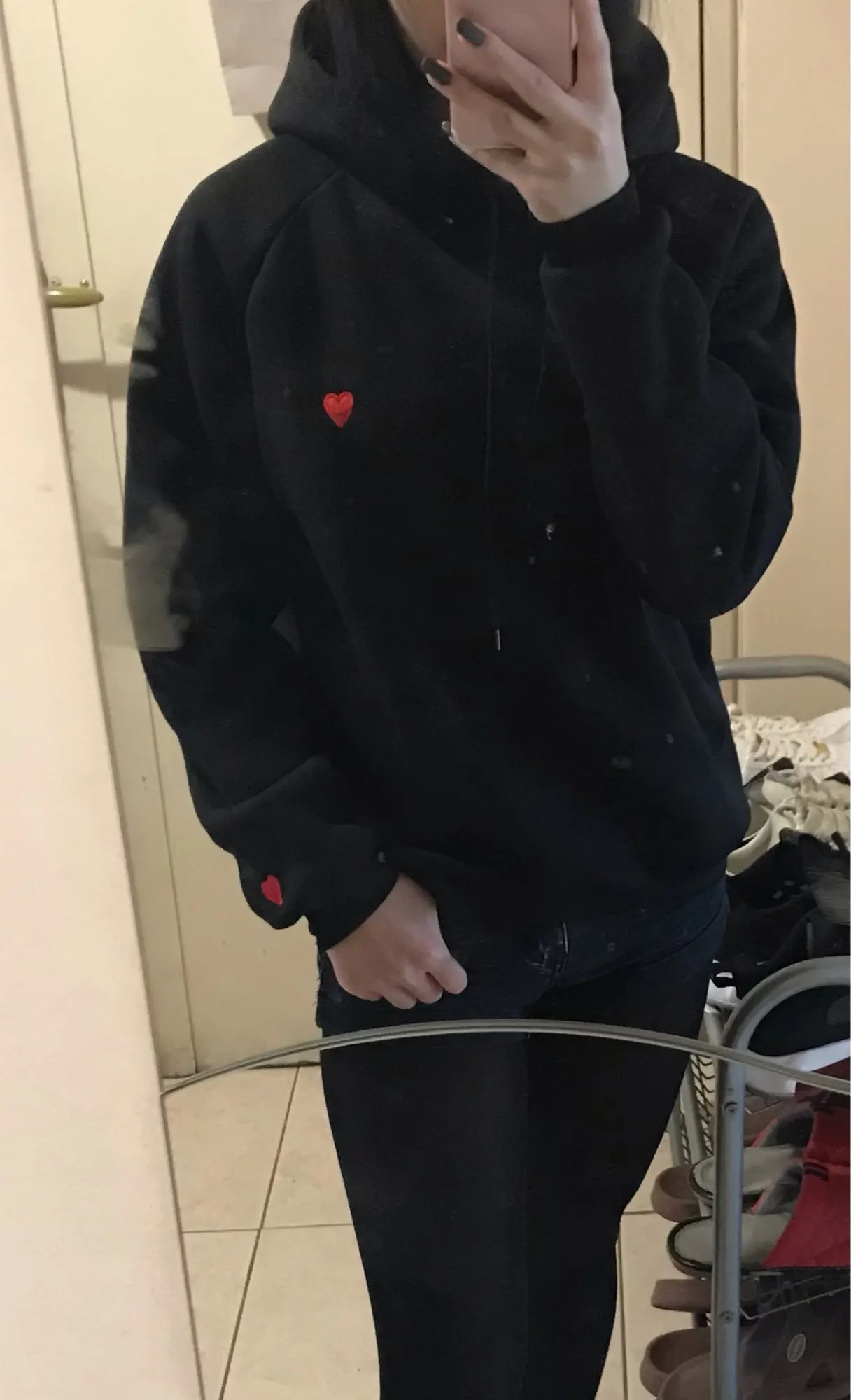 Посылка рришла быстро за 2 недели! толстовка теплая с флисом, но есть и минусы с наружи синтетика т.е полиэстер, капюшон маловат. Цвет красивый, вышивка качественная. заказала S размер подошла на мой 167см, но лучше заказать M.будет свободней и рукав длиннее.