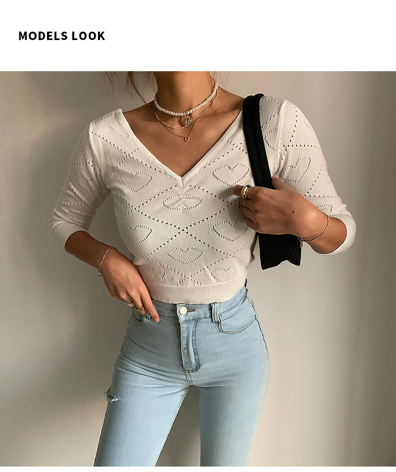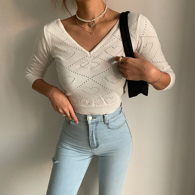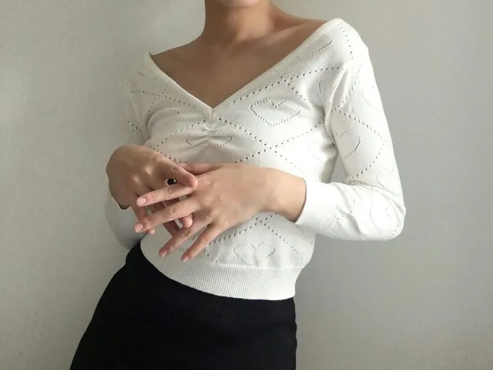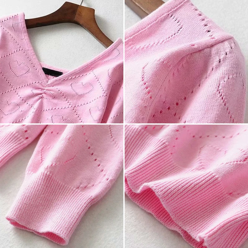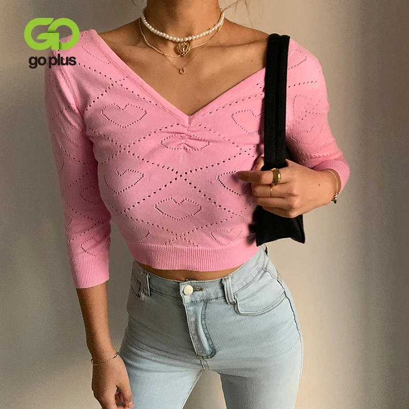 Женский джемпер с сердечками GOPLUS, Розовый пуловер с v-образным вырезом в Корейском стиле, модель 2020 C8984