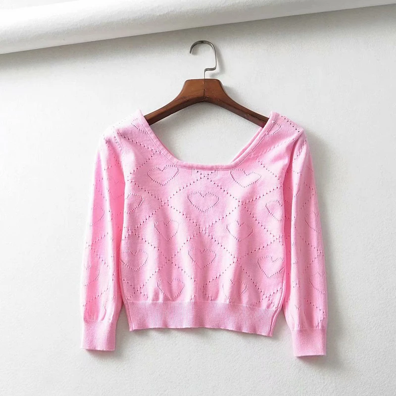 Женский свитер в Корейском стиле GOPLUS, розовый джемпер с сердечками, одежда для женщин, зима 2022, C8984