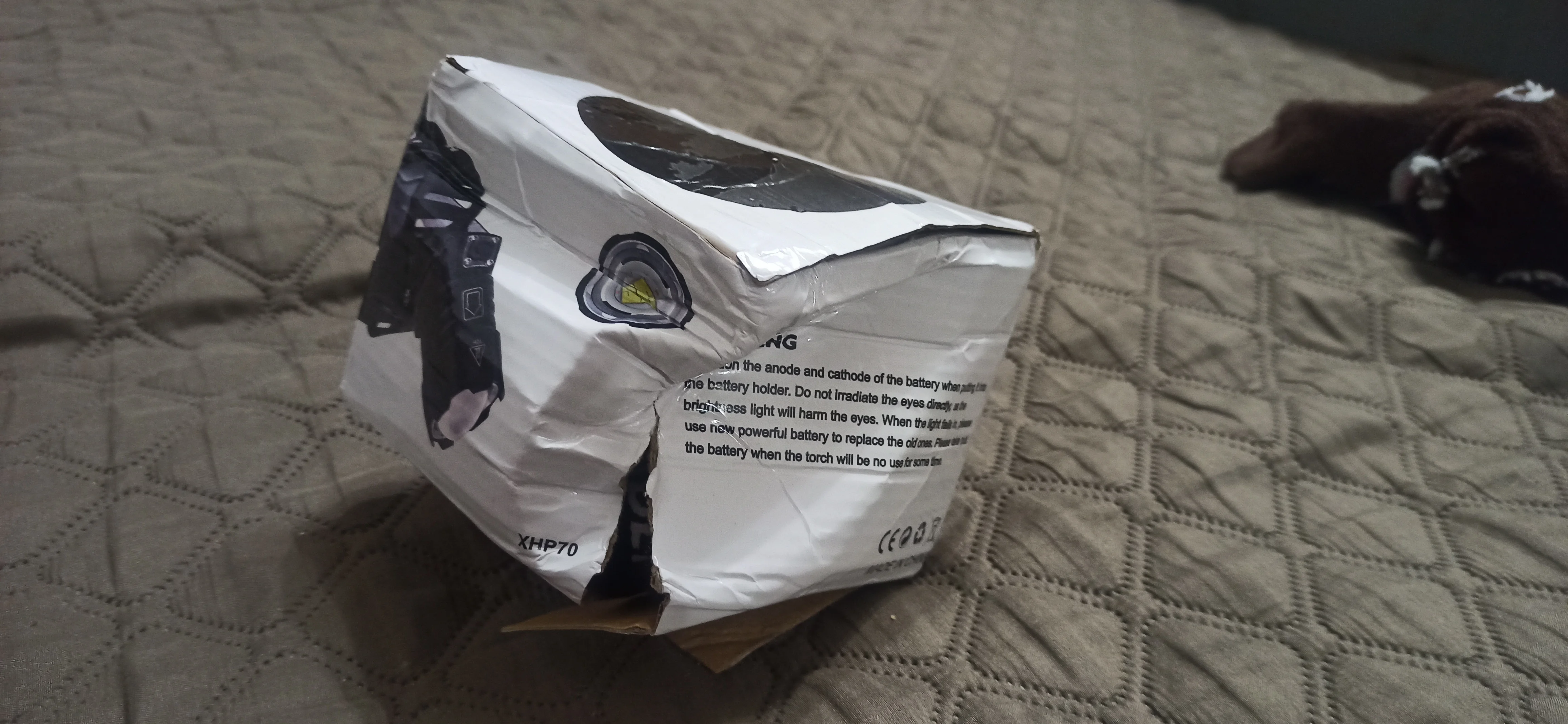 Коробка оказалась поломанной. Надо было подумать о хорошей упаковке. В дороге ее поломали. Фонарик работает СУПЕР!!!!! Отлично! The box was broken. I should have thought of a good package. The flashlight works SUPER!!!!! Great!