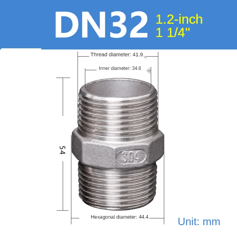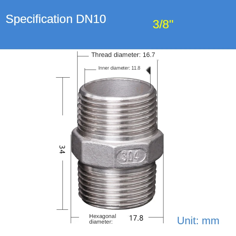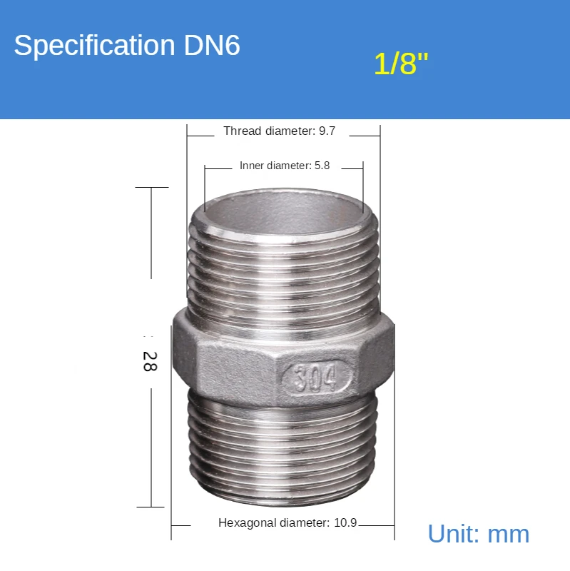 Штуцер резьбового редуктора с шестигранным ниппелем «Папа-папа» из нержавеющей стали 304 DN6 DN8 DN10