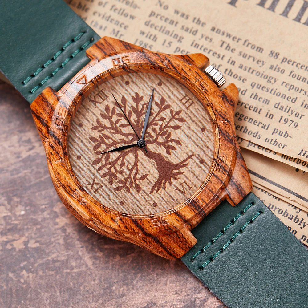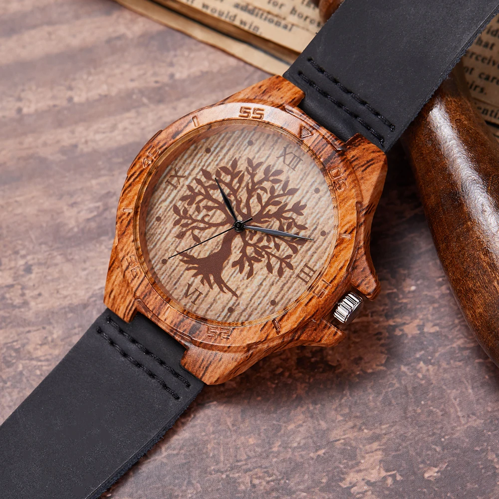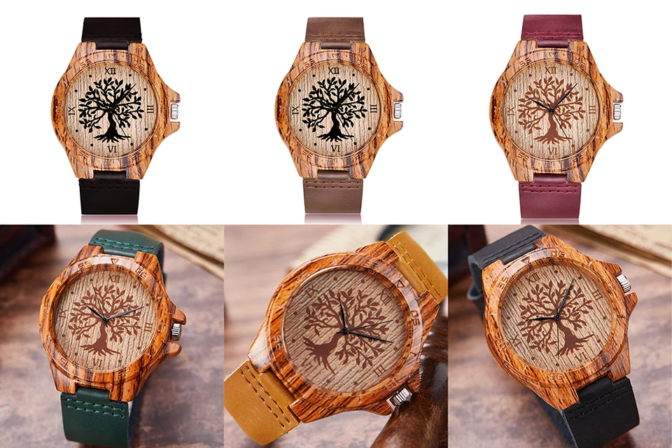 Часы мужскиеженские, кварцевые наручные с имитацией дерева, со страусиным оленем, с мягким кожаным ремешком
