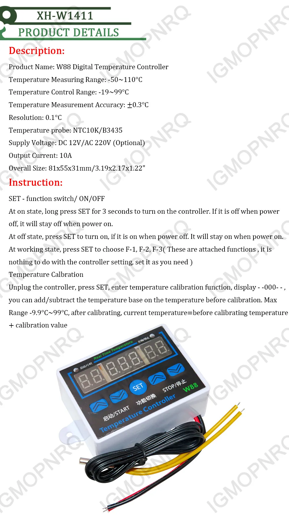 W1411 220V12V 10A LED Digital Temperature Controller Thermostat Control Switch Sensor For Greenhouses Aquatic Animal Husbandry