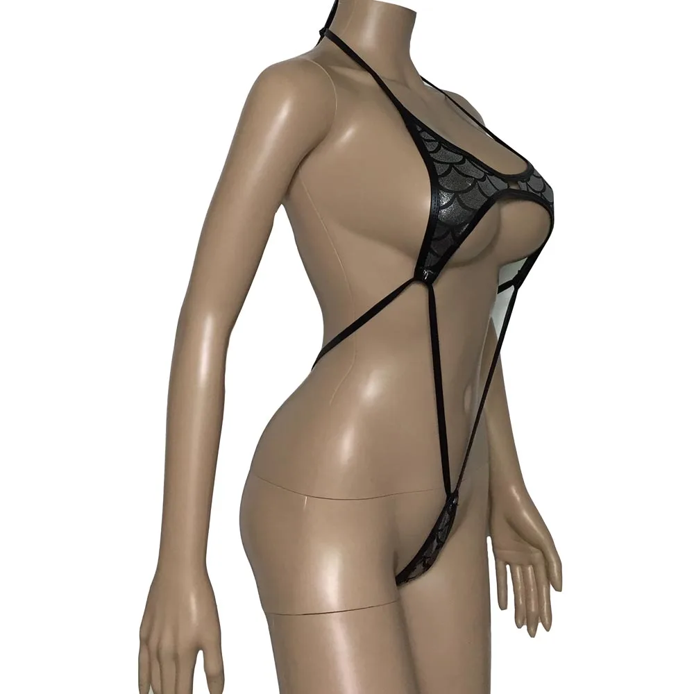 Сексуальное женское блестящее бикини с принтом в виде рыбьей чешуи, Цельный купальник из искусственной кожи, купальник с металлическим блеском, нижнее белье