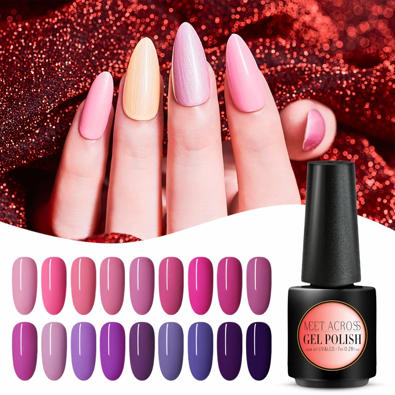 MEET ACROSS Purple Цветной Гель-лак для ногтей 7 мл УФ светодиодный отмачиваемый Гель-лак для Ногтей Стойкий розовый цвет