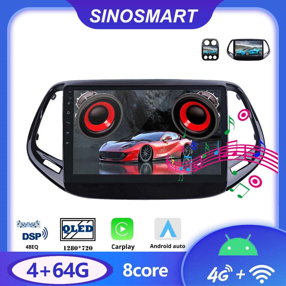 Sinosmart автомобильный радиоприемник с навигацией GPS для Jeep Compass 2010-2016 2017-2019 2.5D QLED экран 8 ядер, DSP 48EQ