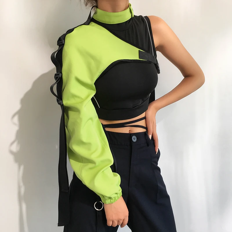 Женская уличная Светоотражающая куртка Weekeep, короткая куртка на одно плечо с пряжкой на шее, 2019