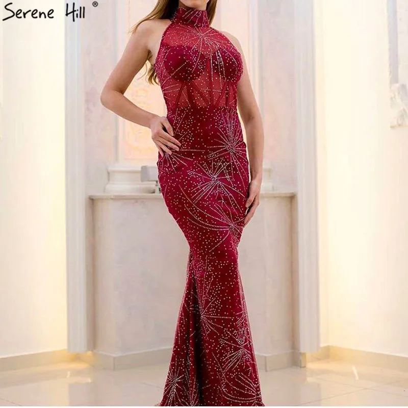 Роскошное платье для выпускного вечера из Дубая винно-красного цвета, с высоким воротником, привлекательное винтажное платье для выпускного вечера, реальное фото, модель BLA60744, 2020
