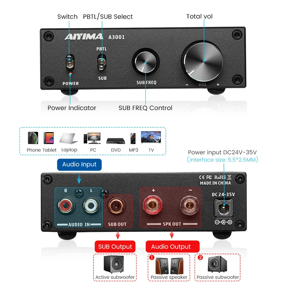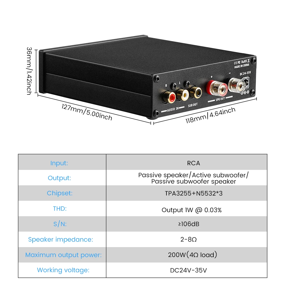 AIYIMA TPA3255D2 усилитель 200 Вт HIFI Одноканальный Аудио усилитель сабвуфера класса D AMP NE5532 OP AMP для домашнего звука