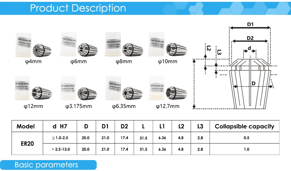 1 комплект0,008 мм точность шпинделя Цанги(4 мм, 6 мм, 8 мм, 10 мм, 12 мм, 3,175 мм, 6,35 мм, 12,7 мм)