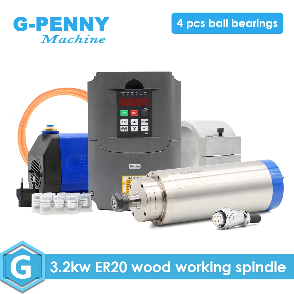 1 и220v 3.2kw ER20 шпиндель с водяным охлаждением, деревообрабатывающий 4 подшипника