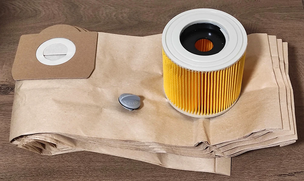 Мешки не проверял, но визуально кажется, что бумага немного тоньше чем в оригинальных. Фильтр отличается значительно: резинки очень твердые почти как пластик + диаметр меньше на 1-2 мм, поэтому полностью не прилегают (но вроде на работе не сказывается)